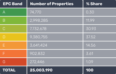 Our research shows that across England, around 43% of properties have an A-C EPC rating, leaving the majority of properties still in need of energy-efficiency improvements to reach the government’s minimum C target.