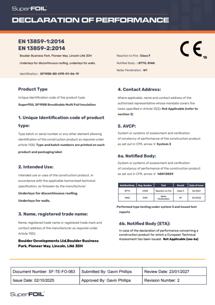 SuperFOIL SF19BB | Declaration of Performance