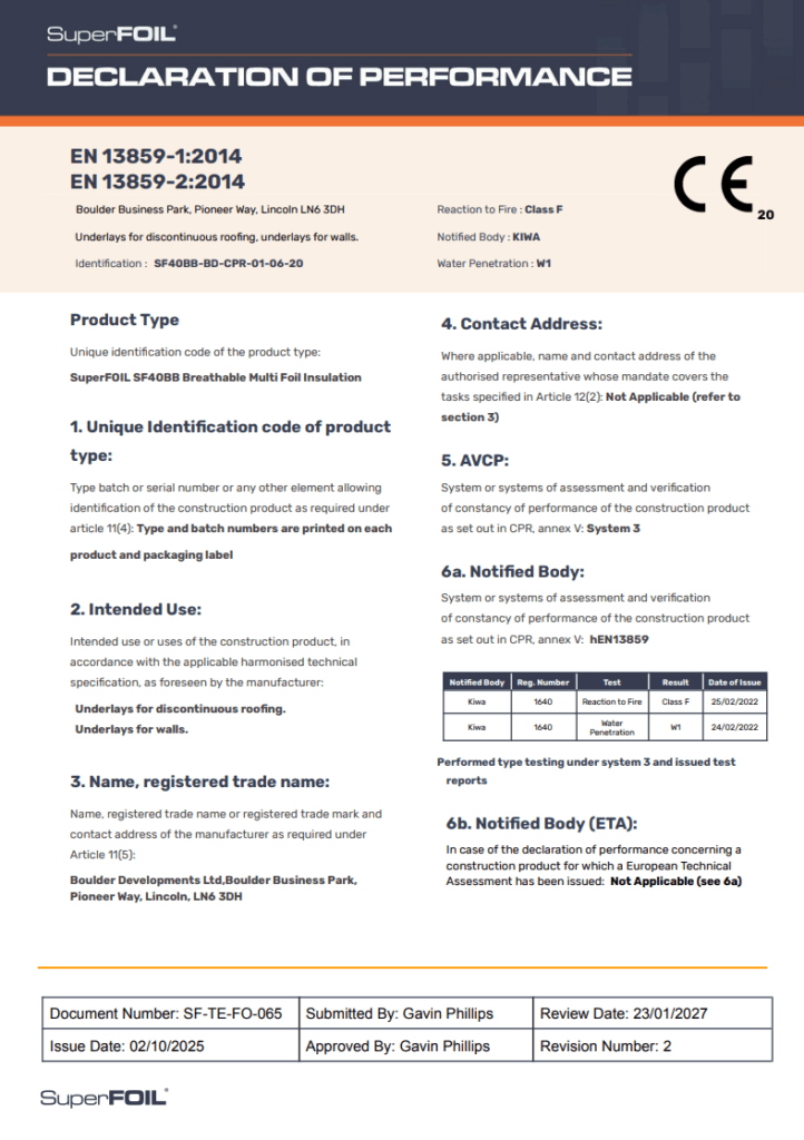 SuperFOIL SF40BB | Declaration of Performance